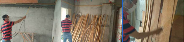 1、開(kāi)工前對(duì)所有可能與木料接觸的墻體部位進(jìn)行噴藥(具體指窗套、門套、墻裙、堤角線、各類柜子與墻接觸的墻面);墻體無(wú)木料部位噴1米以下!